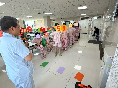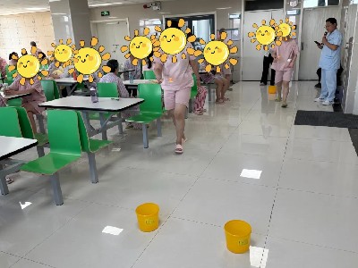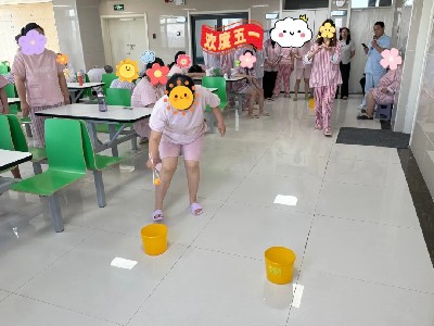 在夾紙運(yùn)杯過程中,患者需要運(yùn)用身體各部位的協(xié)調(diào)能力,如用腿夾紙、頭頂紙杯有助于鍛煉患者身體的平衡感、肌肉力量和肢體協(xié)調(diào)性,促進(jìn)身體機(jī)能的恢復(fù),活動中可能會出現(xiàn)紙和杯子掉落等情況,患者需要在原地重新“裝備”好后再出發(fā),這能促使患者思考如何更好地完成任務(wù),提高應(yīng)對問題和解決問題的能力。 蒙眼擊鼓:解鎖康復(fù)新玩法 活動要求患者手持鼓槌并移動到鼓前進(jìn)行敲擊,這一過程需要協(xié)調(diào)手臂、腿部等多個部位的動作,有助于提高身體的協(xié)調(diào)性和靈活性。而且在行進(jìn)過程中,患者要依靠其他感覺來輔助判斷身體的姿態(tài)和位置,從而保持平衡,促進(jìn)平衡能力的發(fā)展。對于本體感覺發(fā)展不完善的患者,能促進(jìn)本體覺的發(fā)展,提高身體知覺度。 戶外活力賽場綻放青春光芒 “羽你同行”友誼賽:共赴康復(fù)之約 輕巧羽毛球劃出優(yōu)美弧線,患者們組隊比拼,在陽光下綻放自信笑容,在合作中提升協(xié)調(diào)能力。每一次扣殺、每一次救球都成為康復(fù)路上的閃耀印記——這不僅是一場競技,更是患者突破自我、重燃生活熱情的生動見證。 “灌籃高手”大比拼:點亮康復(fù)新希望 本次活動旨在為患者提供一個展示自我、釋放壓力的平臺,讓他們在運(yùn)動中忘卻病痛,重拾生活的樂趣。同時,通過團(tuán)隊合作的籃球比賽,增強(qiáng)患者之間的交流與互動,建立良好的人際關(guān)系,讓他們感受到來自社會的關(guān)愛和支持,從而以更加樂觀的心態(tài)接受治療,加快康復(fù)進(jìn)程。